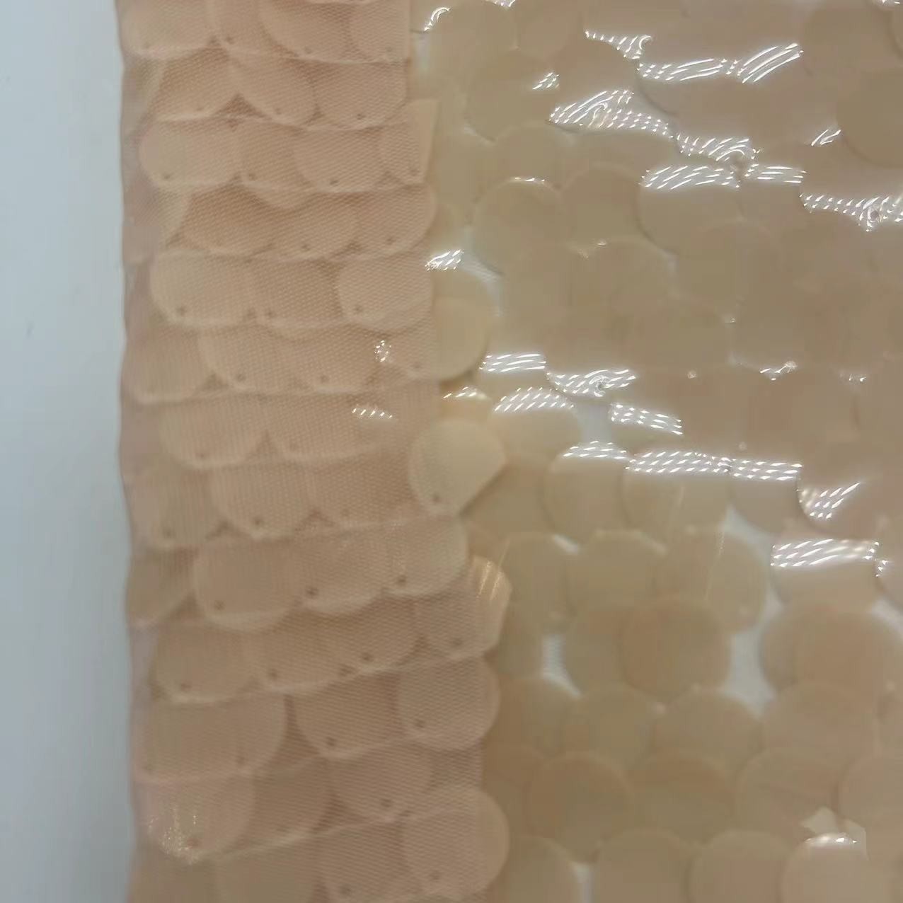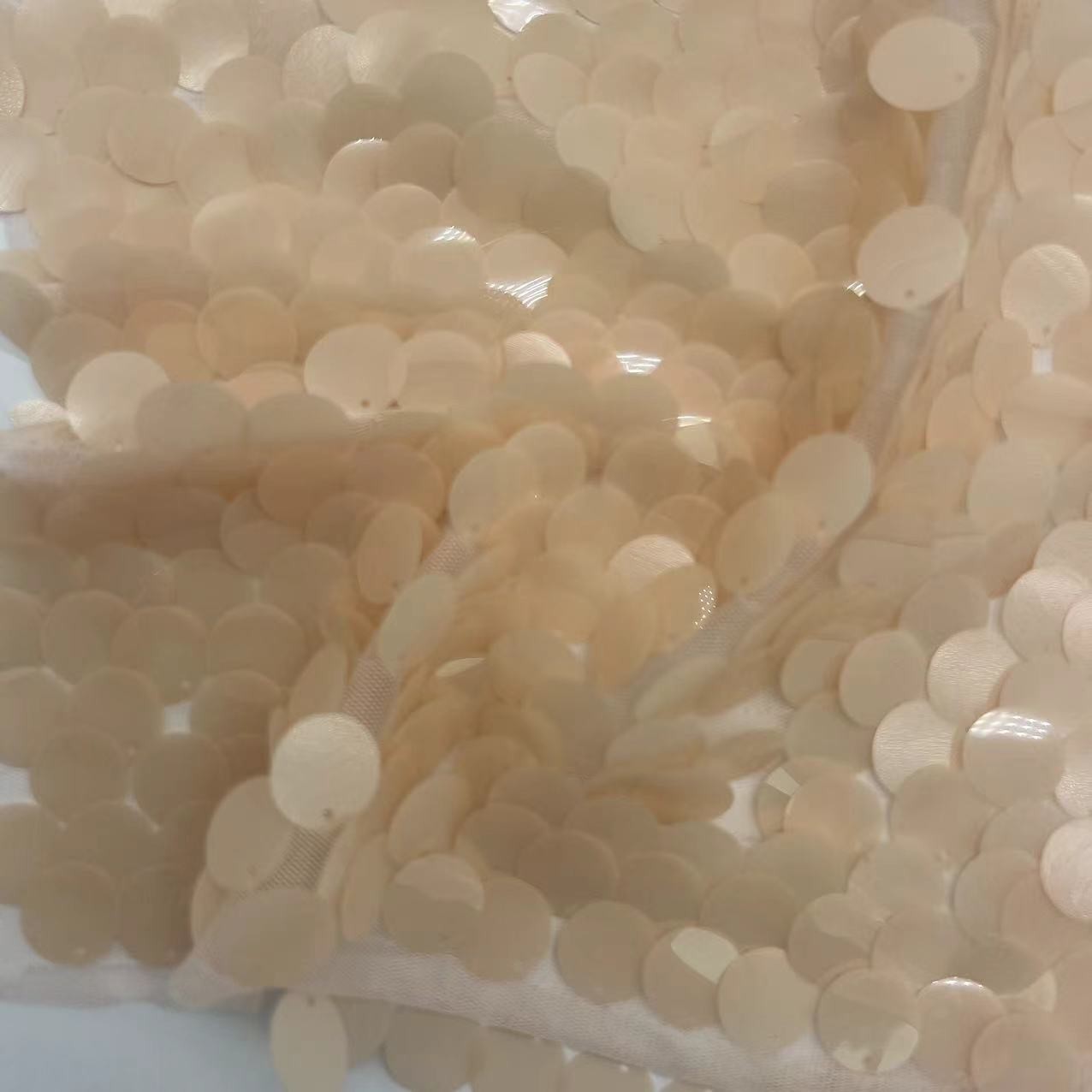 100%ポリエステル ビッグ ベージュ セキンズ 刺身 織物 各種サイズ